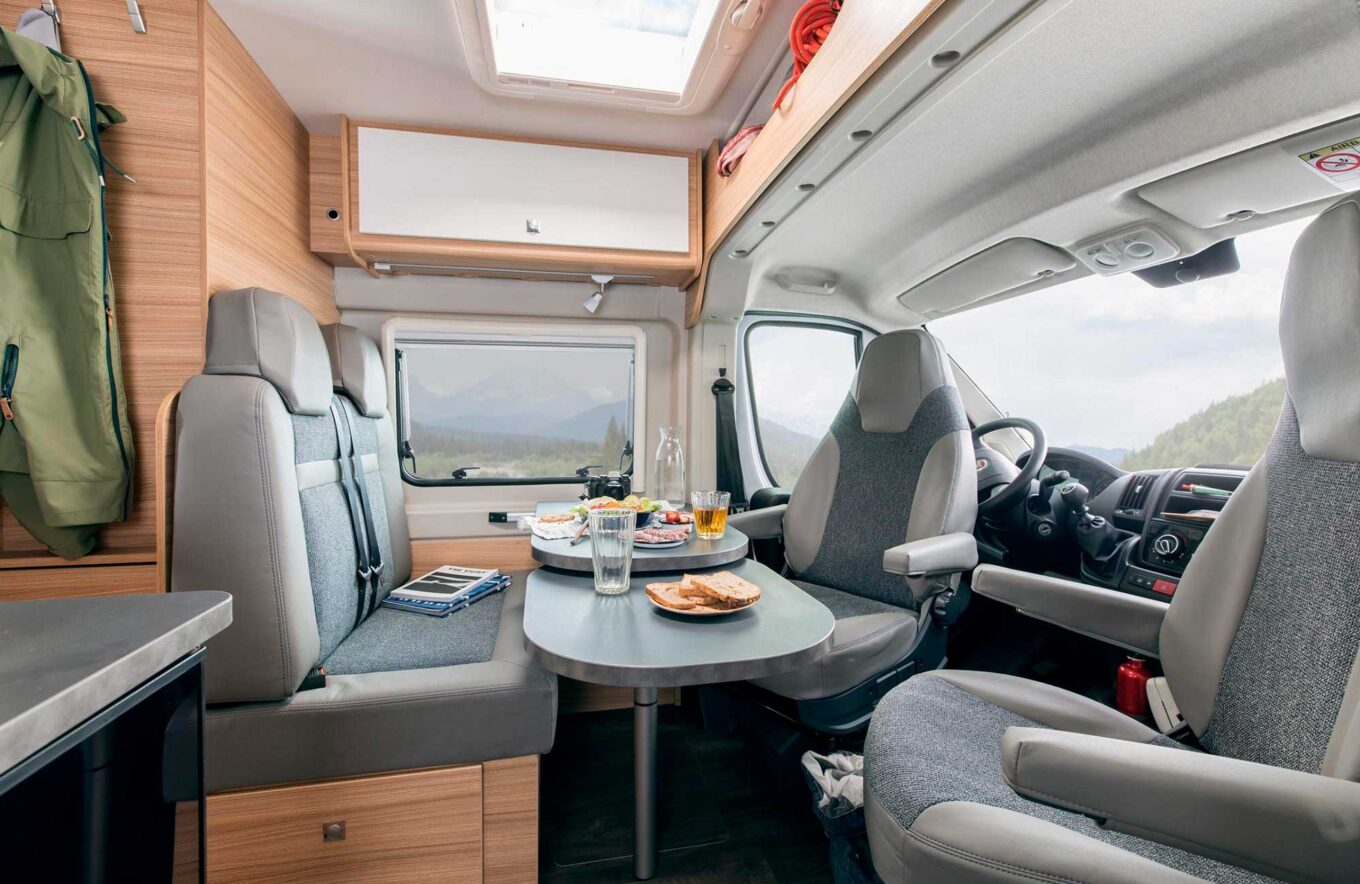 Førerkabinen ligner en varebil. De to forsæder kan drejes og blive en del af siddegruppen. Siddegruppen har to sikkerhedsseler og kan i mange modeller laves om til en seng. Alternativt kan nogle campervan-modeller have et pop-up tag med en seng på taget.